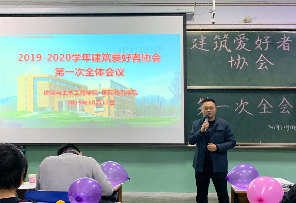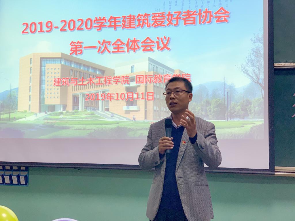 10月11日晚,信阳师范学院建筑与土木工程学院与英国正版365官方网站共建社团——建筑爱好者协会第一次全体会议在教二楼第五阶梯教室召开。建筑与土木工程学院党委副书记方明科、英国正版365官方网站党委副书记姚新春、社团指导老师张伟、建筑与土木工程学院团委书记张晓博、英国正版365官方网站团委老师许孟杨、社团主要学生干部以及2019级新成员代表参加了会议。会议由协会新闻信息部干事伊梦主持。