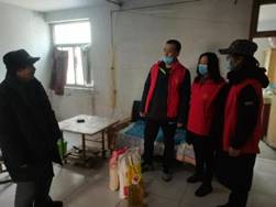 春节前夕,闪欣悦同学跟随社区主任挨家挨户慰问困难群众,送去了米面等慰问品,每到一户人家都认真地询问户主家人的生活情况,关爱充溢在他们的言语里,微笑始终挂在他们脸上。闪欣悦跟随主任走访了多家低保户,看望了一些孤寡老人。每到一户人家,闪欣悦同学都会主动地提出要帮忙做些力所能及的活儿。主任的到来,让困难群众很感动,热情地招呼坐下休息。但他们却一刻不肯停息,与老人拉家常、在房间打扫卫生。与其说慰问,更像是久违的亲人团聚,充满了一种家的温馨感。