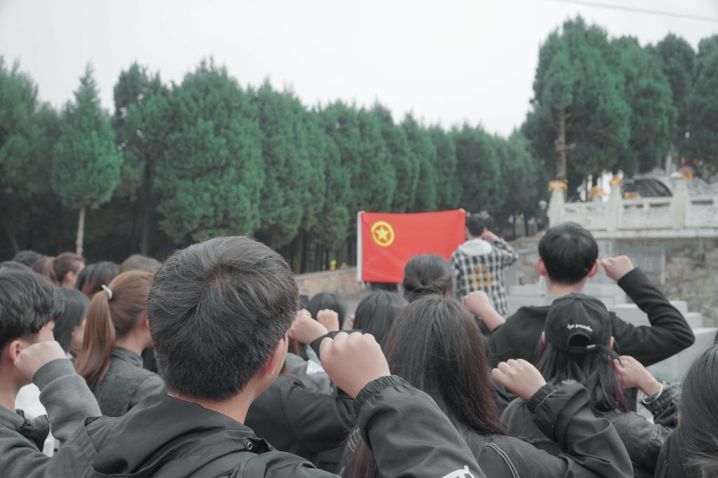 学生代表、青年团员朱琳发言,她说,正是由于革命先烈们的不懈奋斗和英勇牺牲,才让中华民族在战火中涅槃,让新中国有了站起来、富起来、强起来的伟大事业。作为新时代的大学生我们应学习革命先烈的精神,从而使自己成为具有高尚品质和良好道德修养的合格建设者和接班人。接着,沈艳霞老师讲话,她向同学们介绍了曹灿章将军的丰功伟绩,并勉励同学们不忘先烈,学习高尚的品格和无私的精神,要树立远大理想,坚定爱党、爱国、爱社会主义的信念,勇担重担,为把我国建设成为社会主义现代化强国,实现中华民族的伟大复兴中国梦而奋斗。仪式结束后,同学们自发清扫了陵园内部的垃圾,以倡导文明祭祀之风。