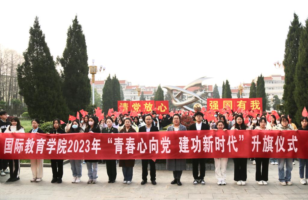春寒料峭,奋楫前行。为深入学习贯彻党的二十大精神,激发全院师生的爱国热情与使命担当,引导英国365官网学子以饱满的热情、昂扬的斗志、充足的干劲全身心投入到学习生活之中,3月27日,英国365官网于明德广场举行升旗仪式。院党委副书记付春锋、团委书记许孟杨、武装干事沈艳霞及2022级学生参加了此次活动。