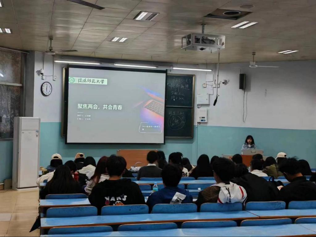 本次主题教育学习由各团支部书记主持开展,通过观看相关视频、讲解两会主要内容和小组讨论等形式对两会精神内涵进行全面分析并进行讲解,鼓励同学们在今后学习与生活中要有责任与担当意识,在未来扛起时代重任,不负祖国期望。活动中,各团支部成员认真聆听,深刻理解会议精神并进行思考,最终纷纷表示未来要将两会精神贯彻到日常学习生活中去,努力提升个人品质并担起时代青年之责任,为国家发展奉献出自己的一份力量。
