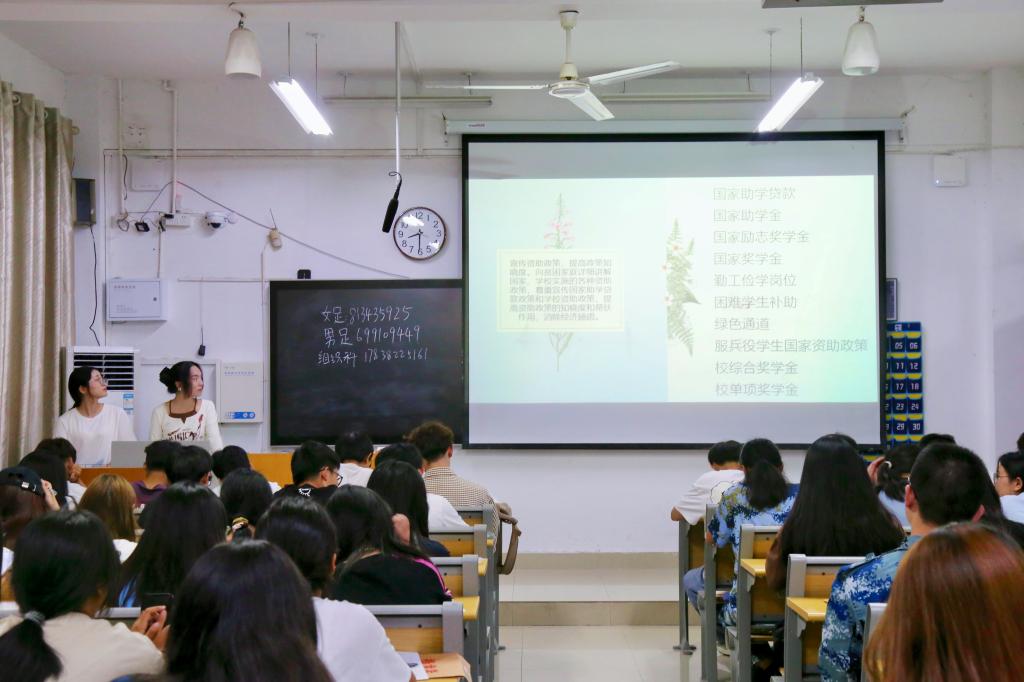 会上,学生会助贷科科长胡胜楠及副科长葛天如详细介绍了国家“奖助贷免补”资助政策体系,结合2024年高校学生资助政策的最新变化,就困难认定、国家励志奖学金、国家助学金、校园地助学贷款工作中的学生系统申请、班级评议审核、表格填写规范细节等进行全面的介绍和梳理,并强调各班资助委员务必做到认真细致、严格把关,按照通知文件要求开展各项资助工作,并及时向辅导员班主任传达汇报进展。会上学生干部们认真聆听,现场进行提问解答环节,使其对资助政策精神和具体开展方式都有了更加深入的理解。