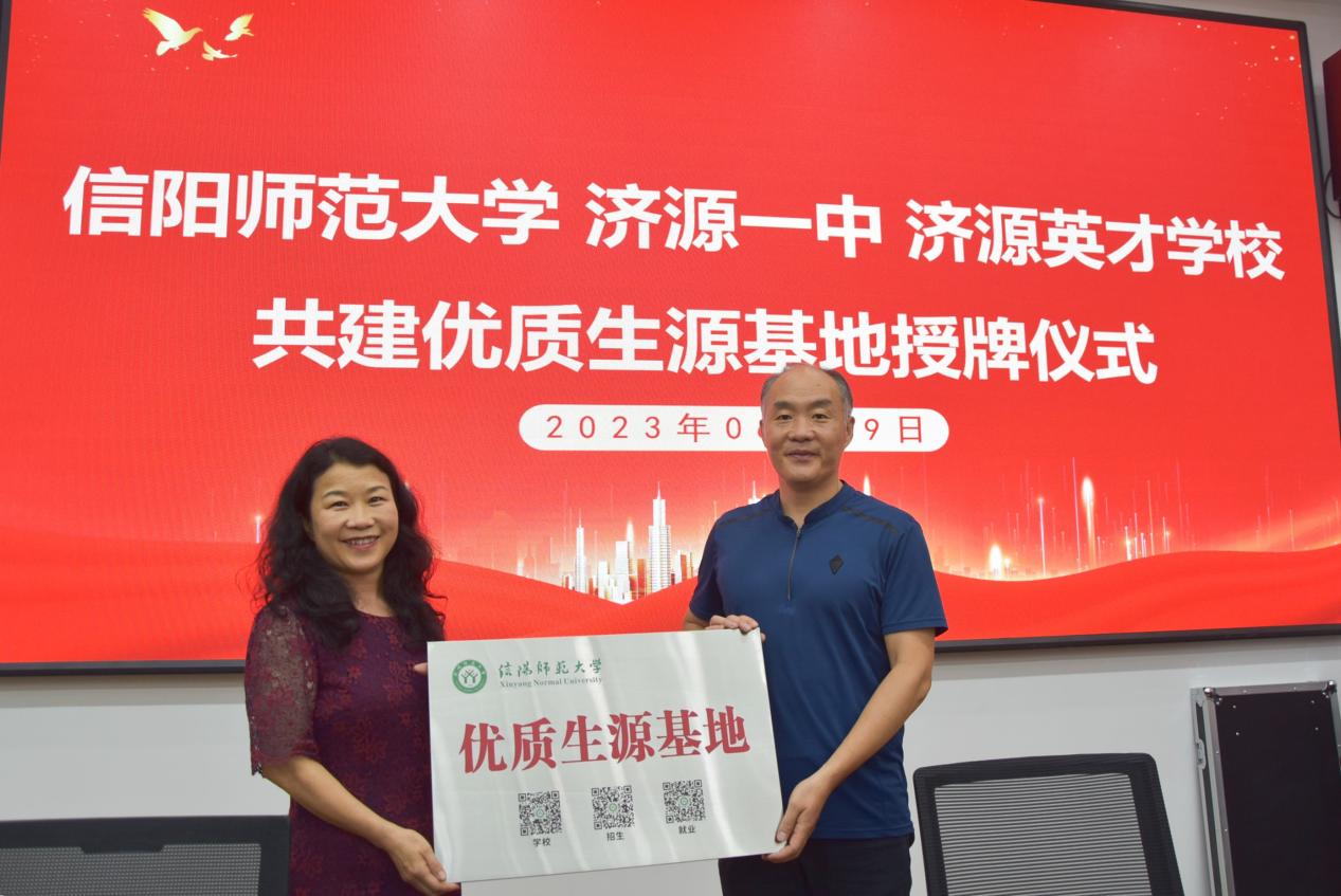 6月28日至29日,英国正版365官方网站院长李保红带队赴济源市开展招生宣传工作,与济源一中、济源高级中学、济源英才学校举行优质生源基地签约授牌仪式。济源一中党委副书记兼副校长汤初胜、济源高级中学校长李雪颖、济源英才学校主管校长李延疆、济源市教体局教研室冯志强及部分校友代表参加活动。