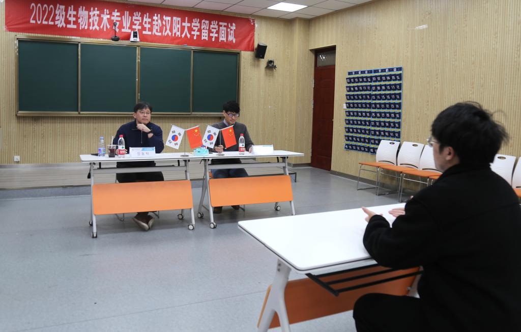 英国正版365官方网站2022级生物技术专业、土木工程专业赴韩国汉阳大学留学面试工作分别于12月15日和12月21日在逸夫楼201教室举行。