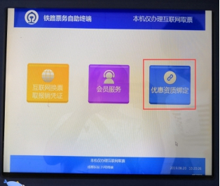 车站取票机绑定资质:(持身份证、火车票优惠卡